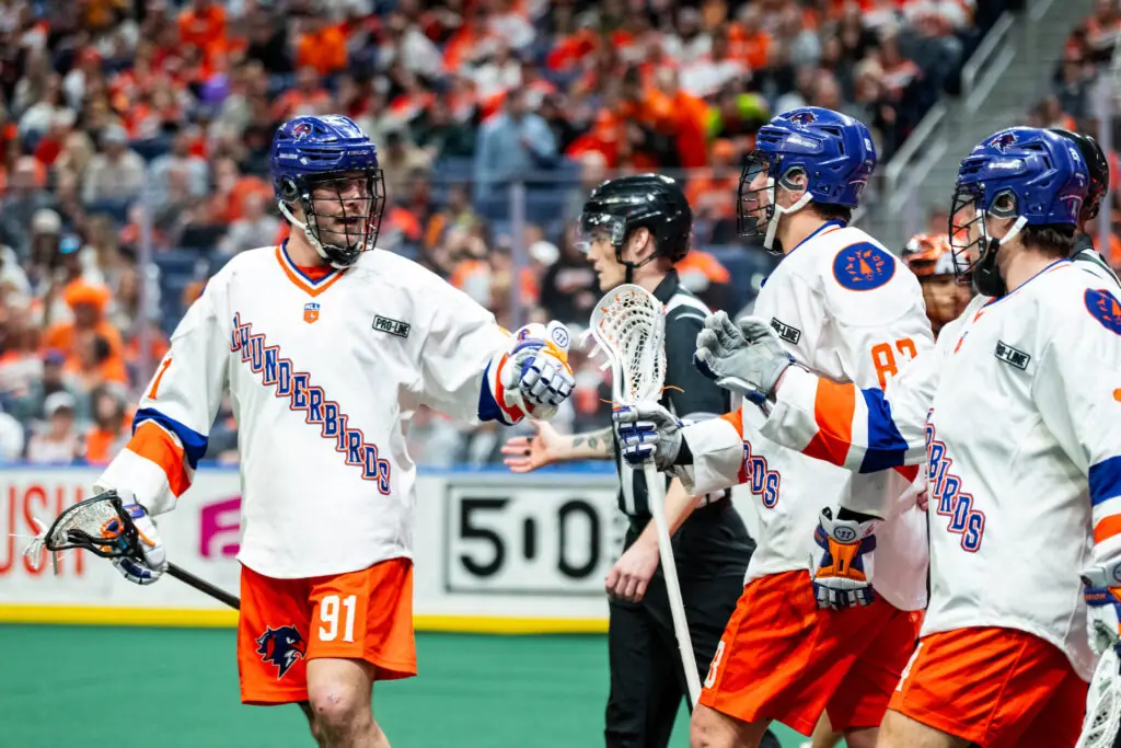 Halifax Thunderbirds on April 12, 2025 at KeyBank Center in Buffalo, NY. Halifax Thunderbirds @ Buffalo Bandits. (Caroline Sherman/NLL)